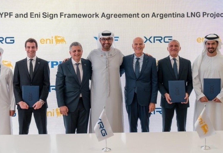 YPF y ENI firmaron hoy un “ Framework Agreement”, un acuerdo preliminar con la empresa XRG, el brazo internacional de inversiones energéticas de ADNOC (Compañía Nacional de Petróleo de Abu Dhabi), para avanzar en la negociación de los términos definitivos para su incorporación al proyecto de gas natural licuado (GNL).