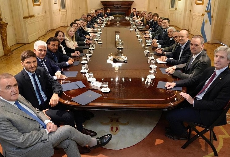 El encuentro, que se llevo a cabo en el Salón Eva Perón, fue convocado por el jefe de Gabinete, Guillermo Francos, y reunió tanto a mandatarios aliados como a algunos que habitualmente se ubican en la vereda opositora. Participó la totalidad del Gabinete nacional, en un gesto de apertura política y federal por parte del Ejecutivo.